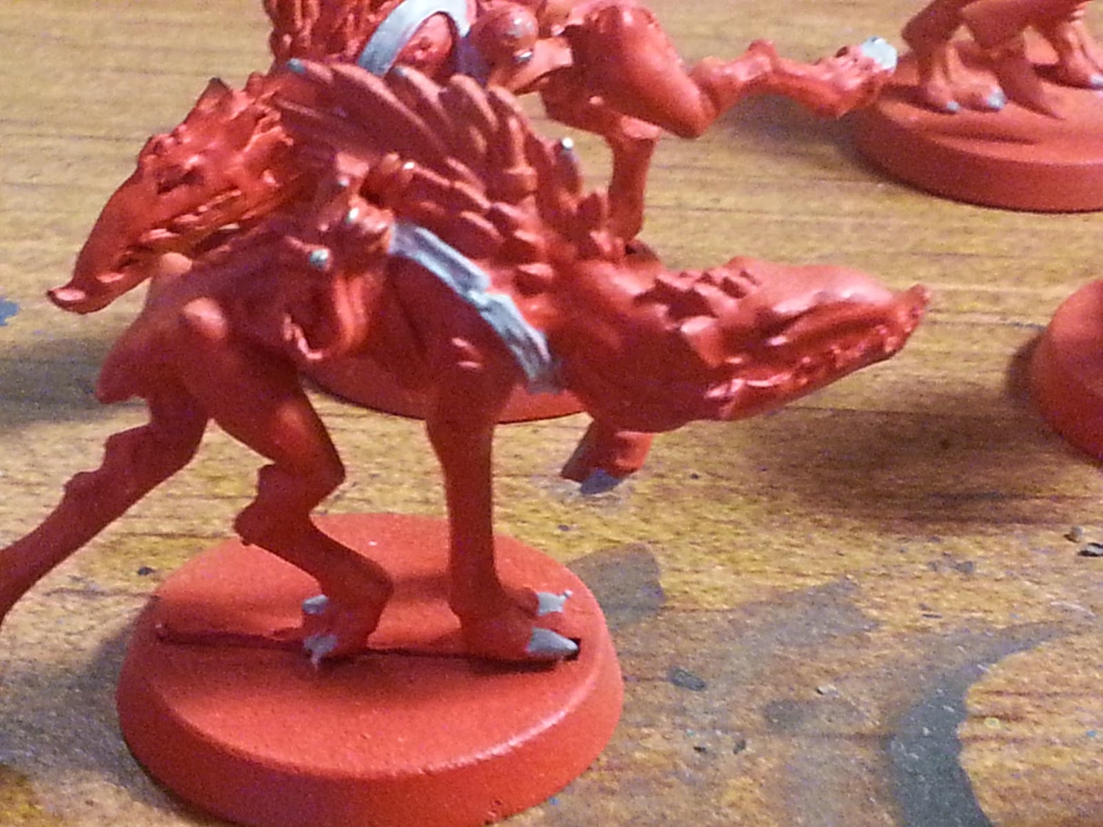 Step one is having all the minis primed red. That was done by Jack prior to me getting them, so I only had to do a couple of red touch ups on the metal hounds.