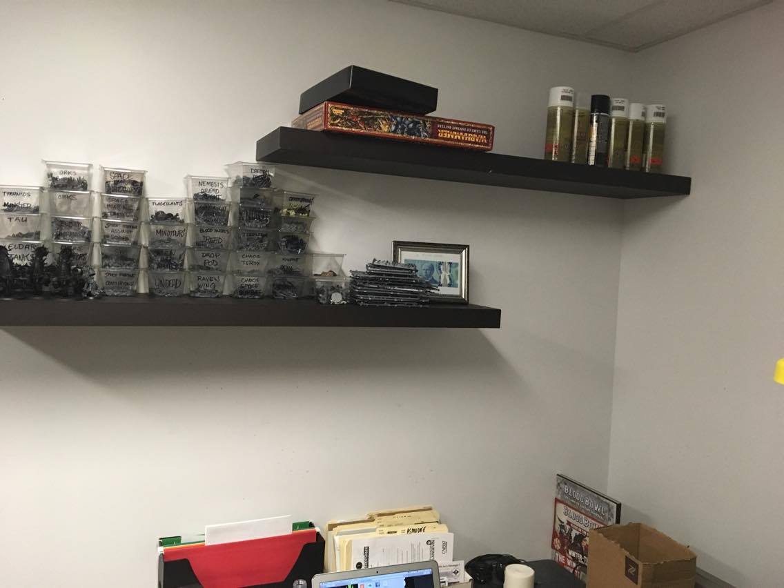 Second thing, while I'm not saying I'm leaving the tournament scene, again, it is a down period for me, with nothing but the QCO, that I'm setting up, lined up before April. I'm using this time to pour work into the store with the guys. They put up these nice shelves to clear up some space next to the desks.